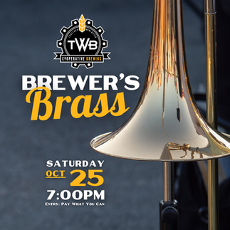 Not only does our Head Brewer, Peter, brew excellent beer, but he's also a pretty talented bass trombonist! Join us in the back of the brewery for an intimate performance by his brass quartet on Saturday, October 25 at 7 pm (doors at 6:30). Entry is pay-what-you-can at the door, first-come, first-served (no tickets or reservations). See you there!